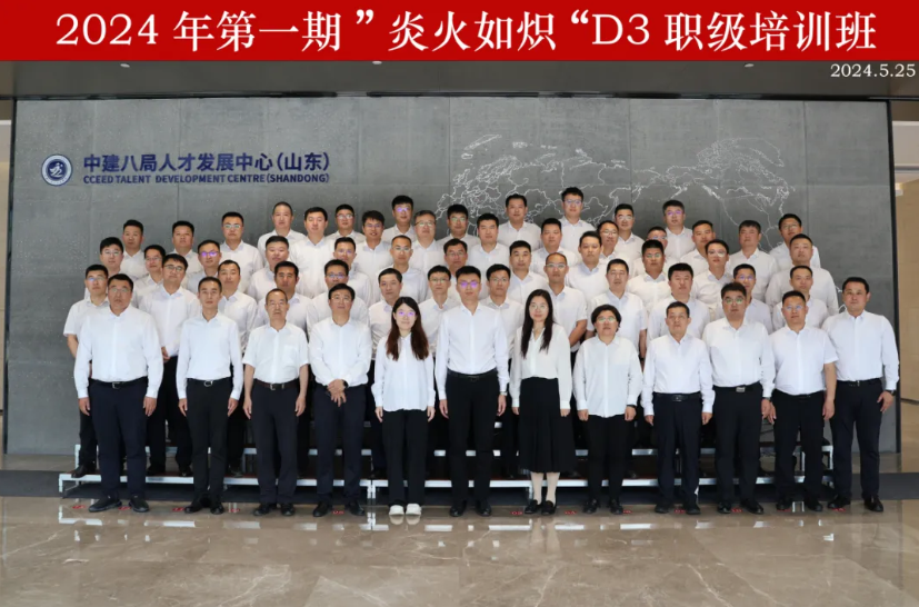 5月25日至26日,中建八局一公司2024年第一期“炎火如熾”D3職級培訓班在中建八局人才發展中心(山東)舉辦,公司D3職級干部共計70余人參培。