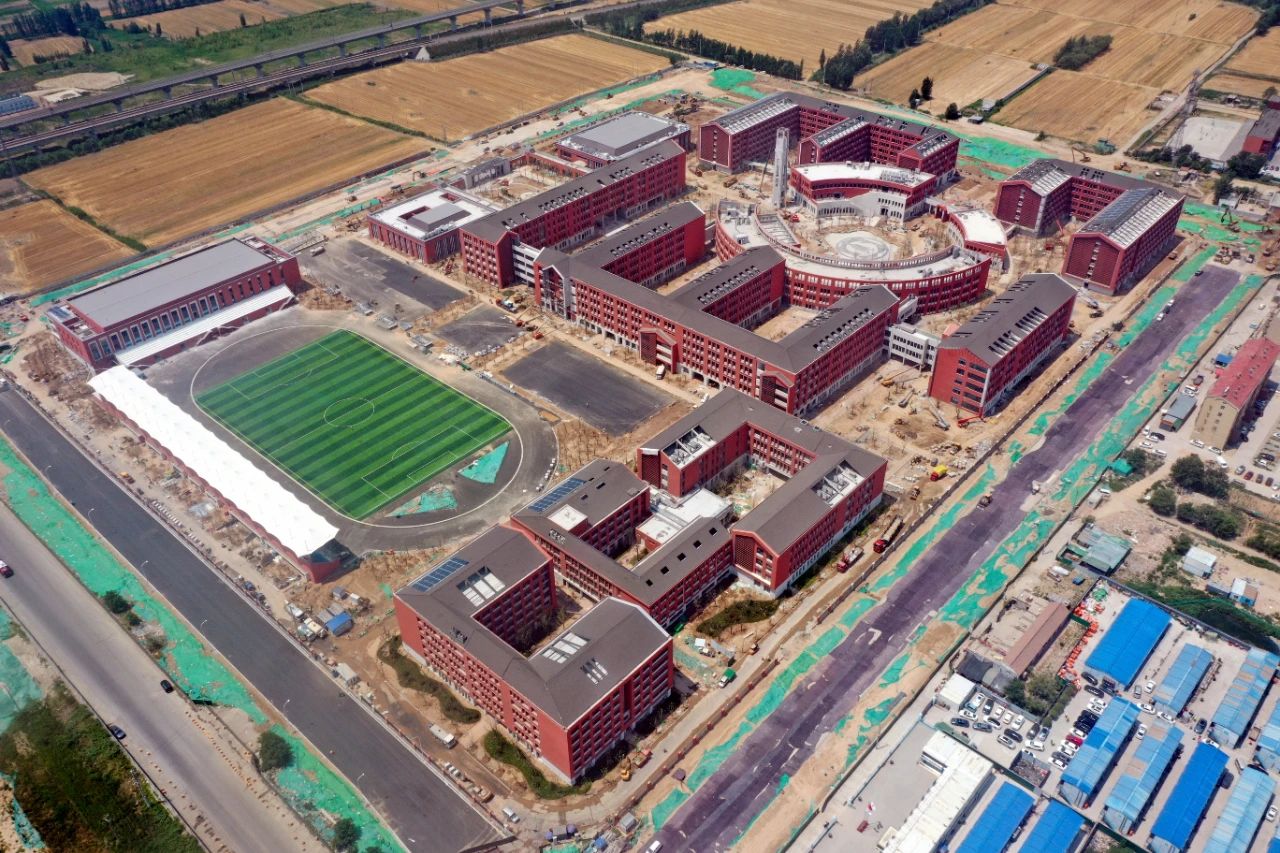 山東省實驗中學鵲華校區高中項目位于濟南市新舊動能轉換起步區,總建筑面積15.06萬平方米,設有60個行政班和20個國際班,新增學位3500個,是濟南市起步區首家現代化、高水平、寄宿制重點高中。目前,項目正處于收尾階段,預計2024年竣工。