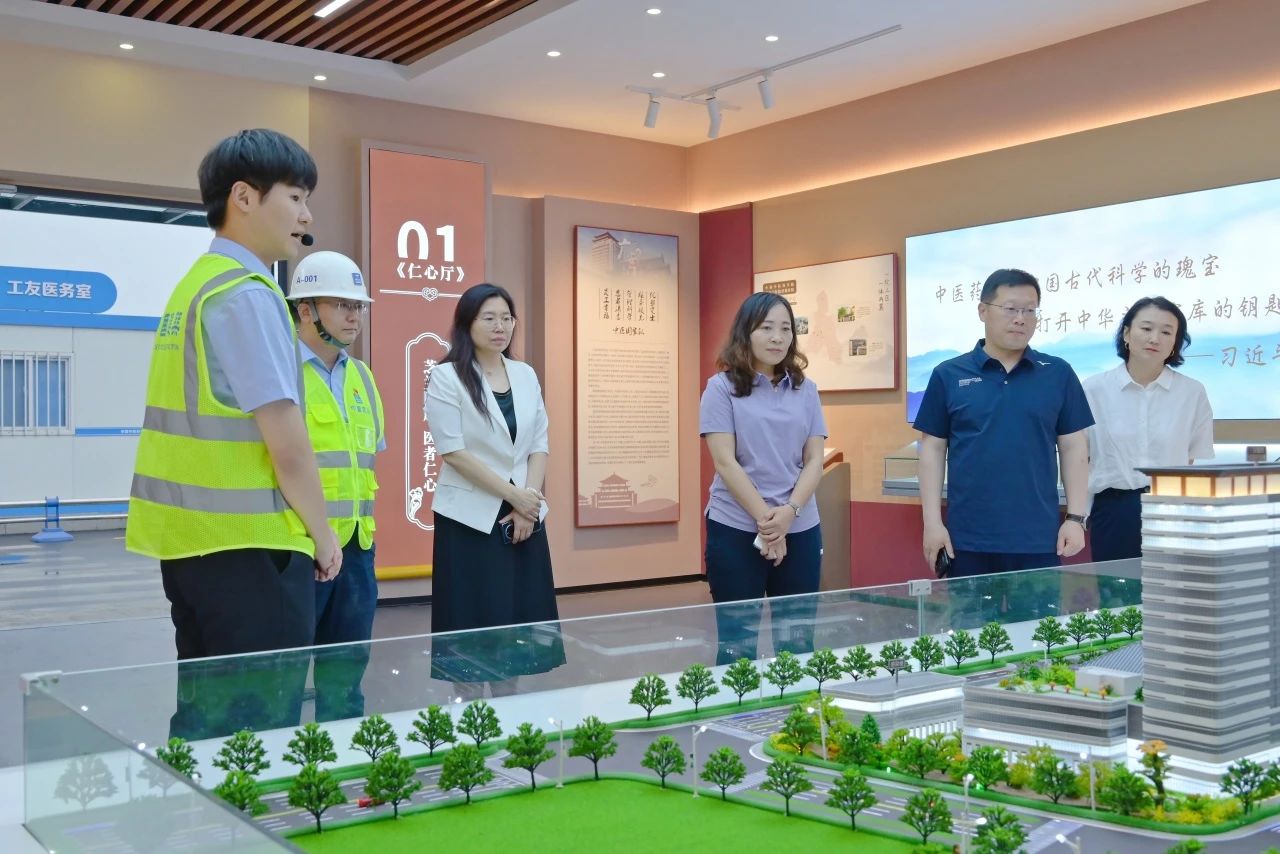 期間,王曉波一行參觀了項目綜合展廳,對項目低碳建造、人才培養、工會工作、黨建融入生產經營等方面工作給予充分肯定。