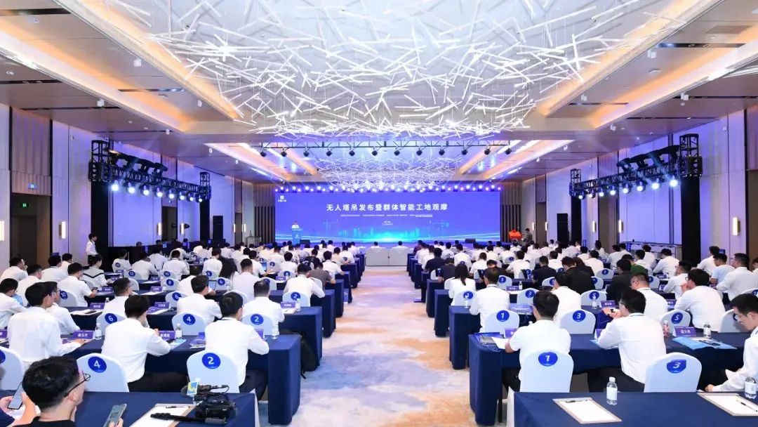 會(huì)上,中建八局無(wú)人塔吊正式發(fā)布,并進(jìn)行了群體智能示范工地揭牌。
