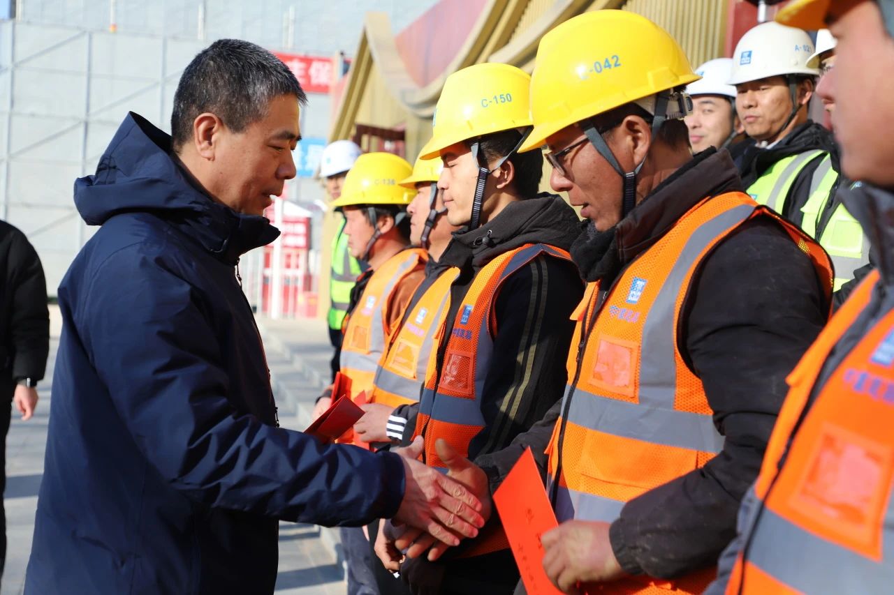 1月10日,中國海員建設工會副主席、分黨組成員吳疆一行赴故宮博物院北院區項目(二標段)開展“送溫暖”慰問活動。中國海員建設工會建筑工作部部長王萌,中建集團工會副主席、黨建工作部(企業文化部)副主任劉建波,工會辦公室主任王城,中建八局工會副主席、工會工作部部長王曉波,中建八局一公司黨委副書記、工會主席聶麗,工會工作部、華北公司相關負責人、項目管理人員及工友代表參加慰問。