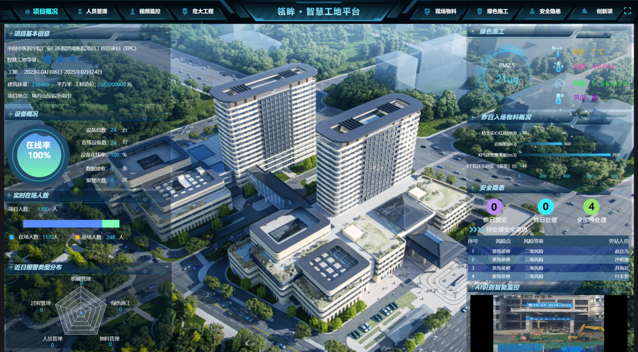 中國(guó)中醫(yī)科學(xué)院廣安門(mén)醫(yī)院濟(jì)南醫(yī)院項(xiàng)目應(yīng)用公司自主研發(fā)的瓴眸·智慧工地平臺(tái),構(gòu)建“大型醫(yī)療工程全過(guò)程智慧管理系統(tǒng)”,通過(guò)移動(dòng)互聯(lián)、物聯(lián)網(wǎng)、云計(jì)算大數(shù)據(jù)等新一代信息技術(shù),形成危大工程監(jiān)管、現(xiàn)場(chǎng)物料管理、安全隱患排查等“6+4+N”智慧管理成果,實(shí)現(xiàn)智能化、網(wǎng)絡(luò)化、數(shù)據(jù)化現(xiàn)場(chǎng)管控。