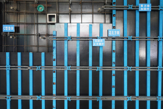 清水混凝土以其本身的質感、顏色與紋理作為飾面,具有質樸無華、返璞歸真的外觀,研發了剪力墻模板工程增強體系,極大改善了模板拼縫、螺栓孔眼以及墻體轉角處的失水漏漿情況,使用BIM技術進行排版,提前識別碰撞,明確預留洞口、明縫、蟬縫以及螺栓眼的位置,讓“點線面體”在統一風格下規范、美觀。