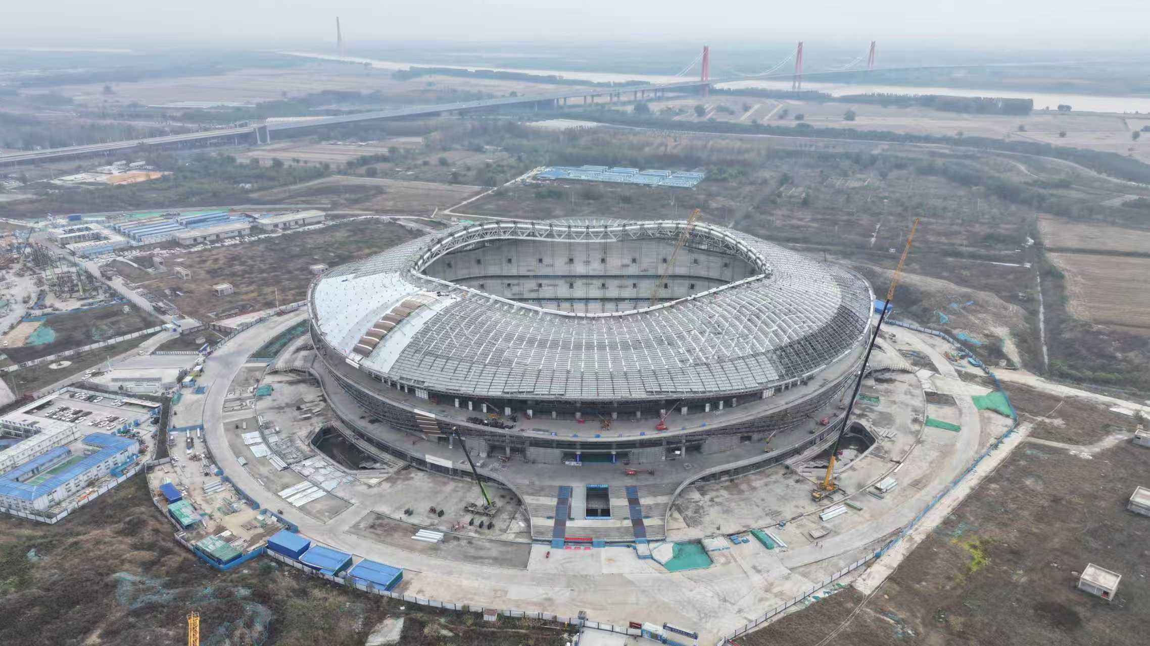 黃河體育中心專(zhuān)業(yè)足球場(chǎng)項(xiàng)目位于濟(jì)南新舊動(dòng)能轉(zhuǎn)換起步區(qū),總建筑面積19.7萬(wàn)平方米,采用國(guó)際足聯(lián)FIFA最新標(biāo)準(zhǔn) ,是山東省首個(gè)6萬(wàn)座專(zhuān)業(yè)足球場(chǎng),落實(shí)黃河流域生態(tài)保護(hù)與高質(zhì)量發(fā)展戰(zhàn)略重點(diǎn)工程,目前處于索結(jié)構(gòu)施工階段,預(yù)計(jì)2026年竣工。
