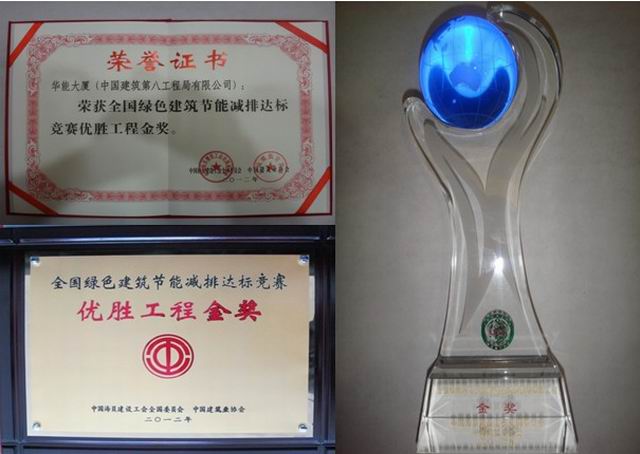 5月15日,由中國海員建設工會全國委員會、中國建筑業協會共同組織的2012年全國建設單位及工程項目節能減排達標競賽表彰會在北京友誼賓館勝利召開。中建八局一公司承建的北京華能大廈項目榮獲全國綠色建筑節能減排達標競賽優勝工程金獎,寧文忠同志、邊守江同志、張忠元同志被授予綠色施工金獎獎章。