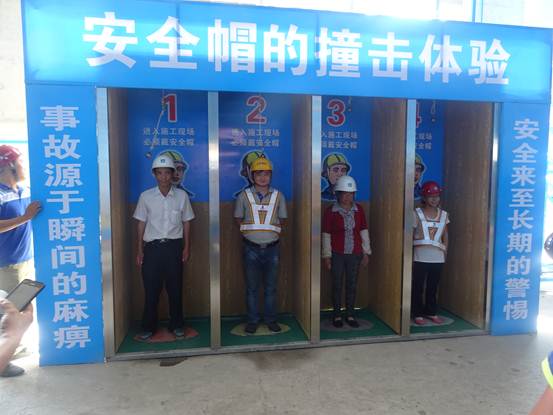在項目安全總監朱廣帝的代領下,農民工來到體驗館,分別進行了“安全帶使用體驗”、“滅火器使用安全體驗”、“綜合用電體驗”、“移動式操作平臺安全體驗”、“安全帽撞擊體驗”、“洞口墜落安全體驗”、“平衡木安全體驗”、“安全防護欄桿的倒塌體驗”等多個項目的體驗。體驗結束后,項目管理人員還采用電視講解的方式,通過多起安全事故案例,讓農民工深切地體會到安全作業的重要性,自覺學習、掌握安全生產教育的知識。