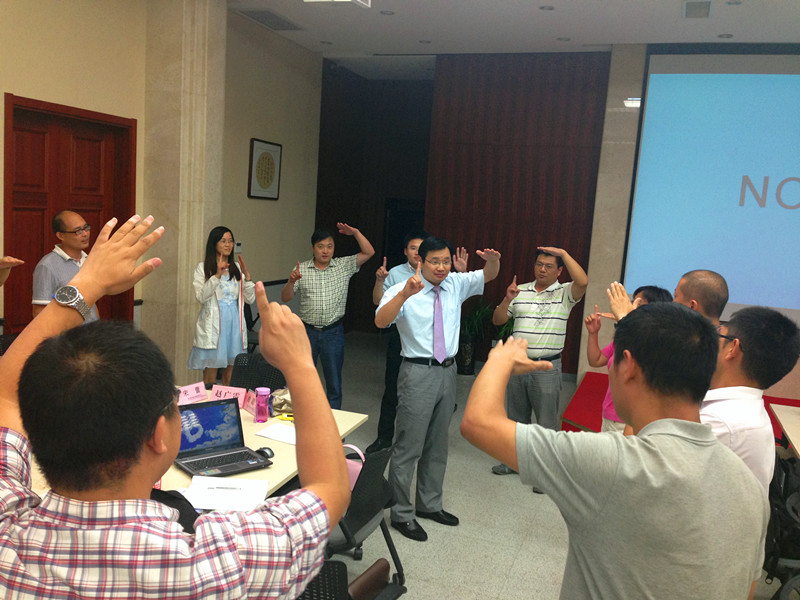 本次培訓以《TTT培訓》為題,培訓師張書豪博士從培訓師角色、課程的設計與開發、如何開場和收場、如何提高表達和控場能力等方面展開,為學員們深入講解了一名合格培訓師應該具備的培訓技巧。為了活躍氣氛,讓學員們都參與進來,張博士除了采用小組討論、團隊互動、情景模擬、上臺演講演練并當場點評等方式之外,還帶領學員進行拓展,并讓大家在輕松愉悅的氛圍中增進交流、加強了解,深刻體會到團隊合作和資源共享的重要性。他幽默風趣的演講給學員們留下了深刻的印象。