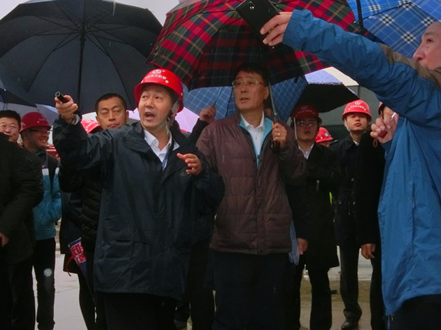 近日,萬達(dá)集團(tuán)副總裁孫繼泉一行數(shù)十人,在萬達(dá)青島總部副總經(jīng)理鄭連平、劉國軍,公司助理總經(jīng)理李允斌等相關(guān)領(lǐng)導(dǎo)的陪同下,冒雨來到萬達(dá)茂項目檢查工作。