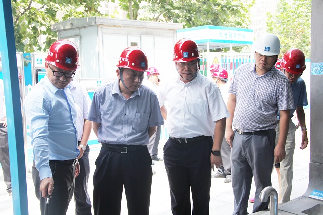 武兆軍一行聽取了項(xiàng)目部的質(zhì)量管控匯報(bào),實(shí)地查看了項(xiàng)目施工現(xiàn)場。每到一處,武兆軍都詳細(xì)詢問施工工藝,仔細(xì)檢查施工質(zhì)量,并與公司董事長、黨委書記李永明,副總經(jīng)理寧文忠親切交流。