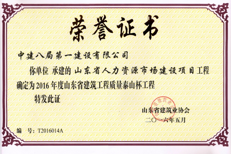 同一年度!同一批次!同一分公司!公司兩工程同時榮獲2016年度第一批山東省建筑工程質(zhì)量“泰山杯”獎