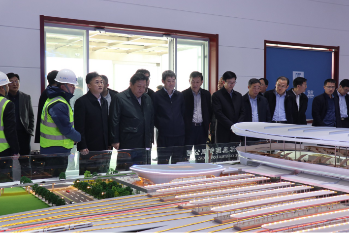 3月1日,山東省交通運輸廳廳長江成一行,在魯南高速鐵路公司總經理孫邵峰等領導的陪同下,赴魯南高鐵站房項目調研。
