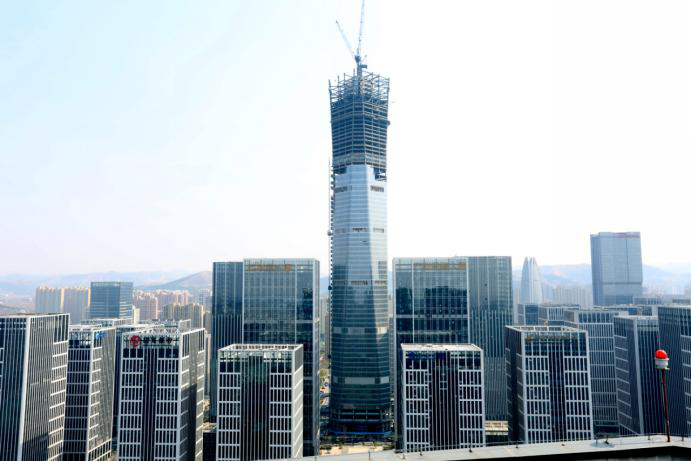 漢峪A5項目總建筑面積25.38萬平方米,是山東省重點建設工程和濟南市打造區域性金融中心、助力新舊動能轉換的破題之作,建成后將成為濟南代表性超高層城市綜合體。2018年6月,濟南漢峪A5項目核心筒結構封頂,以339m的建筑高度成為山東省已封頂第一高樓。(趙玉岐)