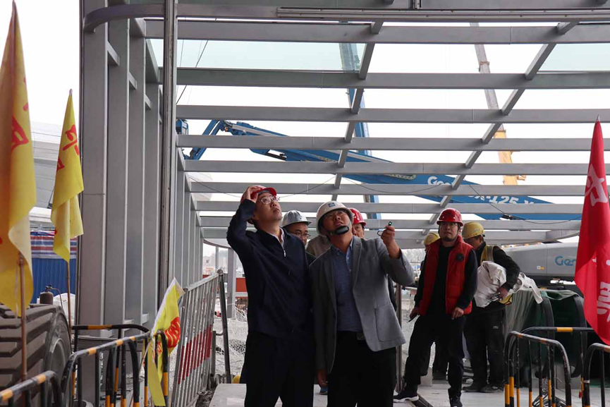 侯曉濱一行來(lái)到臨沂北站施工現(xiàn)場(chǎng)進(jìn)行實(shí)地察看,詳細(xì)了解了工程進(jìn)展情況,聽取了臨沂北站項(xiàng)目經(jīng)理張龍海關(guān)于站房整體規(guī)劃和建設(shè)歷程的簡(jiǎn)介。他對(duì)項(xiàng)目的施工管理和搶工速度給予了高度贊揚(yáng),并現(xiàn)場(chǎng)協(xié)調(diào)解決項(xiàng)目推進(jìn)過(guò)程中存在的困難和問(wèn)題,確保項(xiàng)目建設(shè)按要求順利推進(jìn)、如期完成并盡快投入使用。