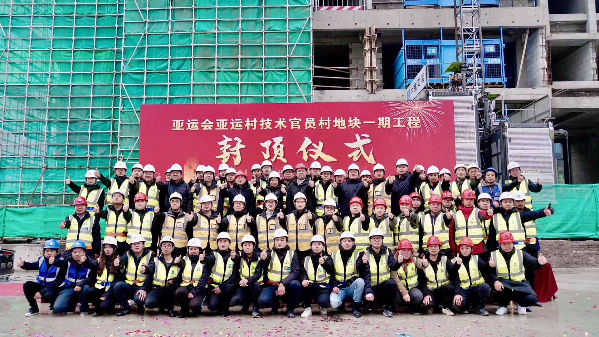 1月10號,由公司承建的杭州亞運會亞運村技術官員村地塊一期工程完成11#樓首棟主體封頂。華潤置地杭州公司助理總經理、華東公司副總經理邊守江及項目全體人員共同見證杭州亞運會亞運村技術官員村一期項目的這一階段性勝利。