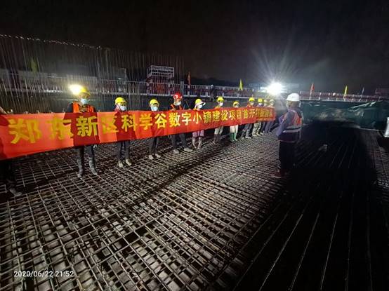 6月22日晚,鄭州市鄭東新區(qū)科學谷數字小鎮(zhèn)建設項目(一期)EPC總承包第二標段綜合展示中心基礎筏板全線首開澆筑。