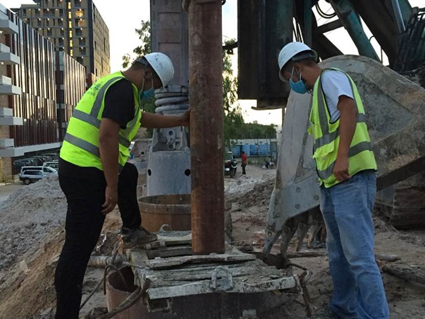 柬埔寨德瓦度假村項目OFFICE-3第一根支護(hù)樁成功灌注