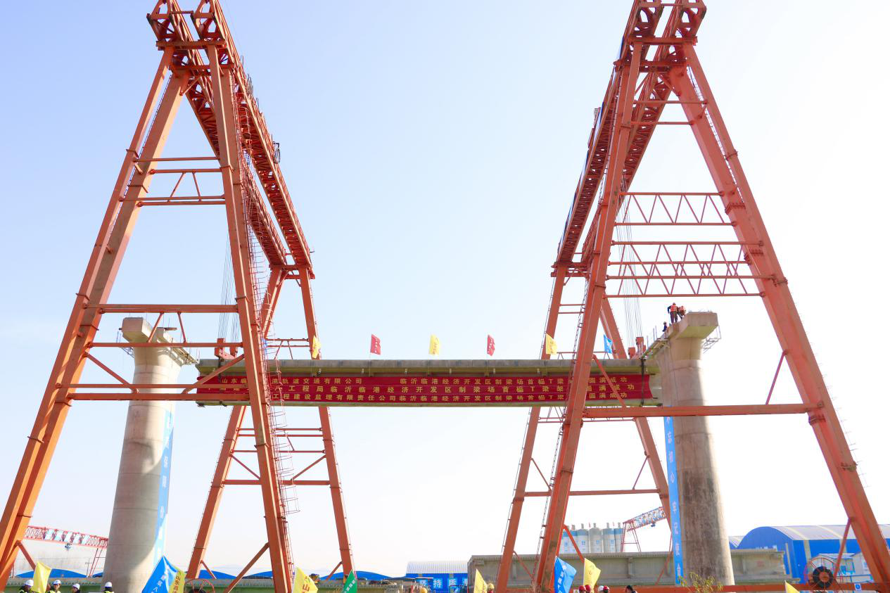 12月16日,臨沂臨港疏港鐵路項目完成首片T梁架設,進入橋梁上部結構施工階段。