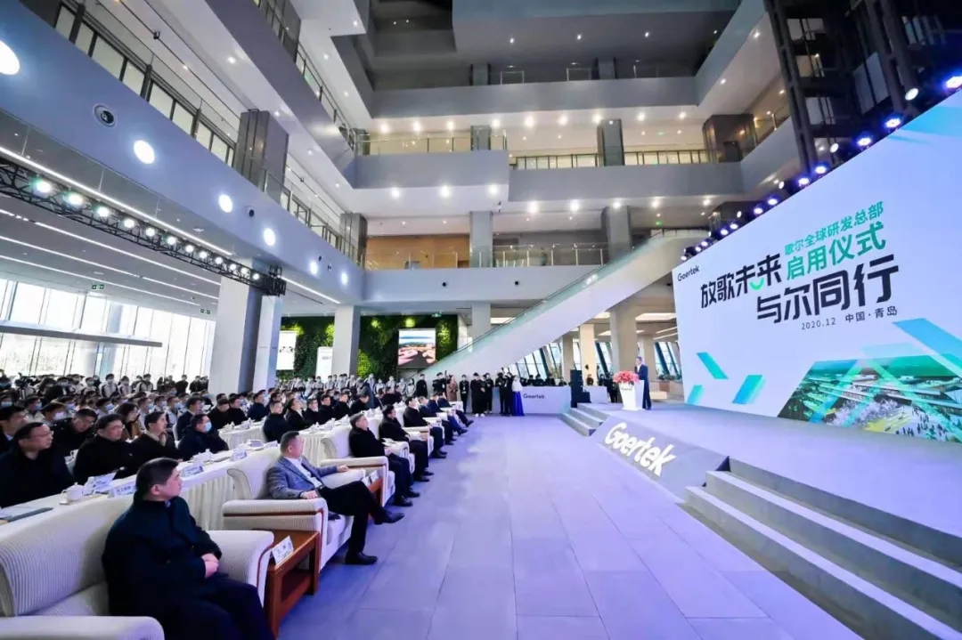 12月24日,歌爾科技產業園一期項目啟用儀式在青島舉行。歌爾全球研發總部總建筑面積30萬平方米,位于青島市嶗山區,是全國最大的清水混凝土建筑。
