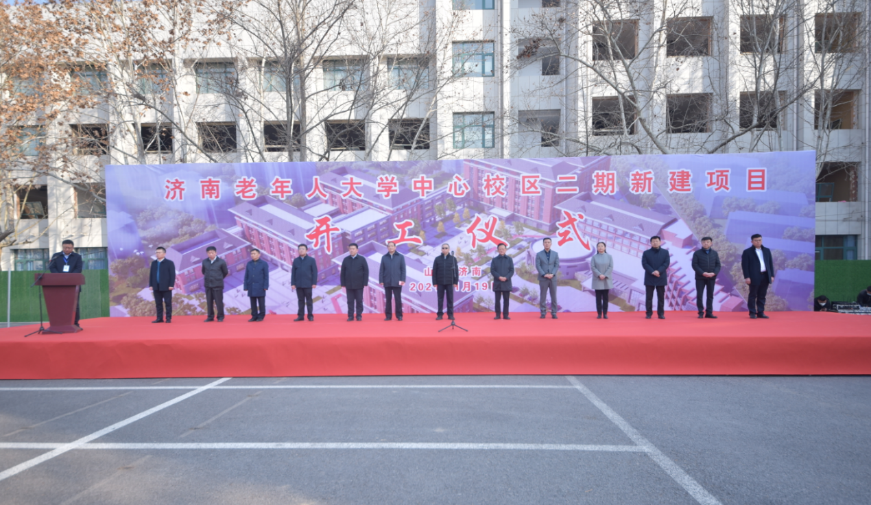 1月19日,濟南老年人大學中心校區二期新建項目舉行開工儀式。