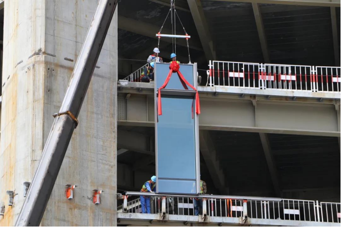 9月29日,隨著“吊裝啟動(dòng)”令下,中國(guó)國(guó)際絲路中心大廈首塊幕墻單元板緩緩升空,順利完成吊裝。