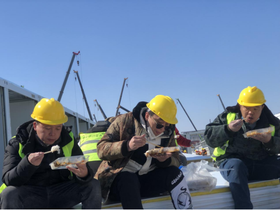 3月的吉林氣溫低至0℃,中建八一1300余名建設(shè)者“零點(diǎn)”作戰(zhàn),跟疫情搶時(shí)間,12小時(shí)內(nèi)完成A5區(qū)全部機(jī)械布置,24小時(shí)內(nèi)完成A5區(qū)全部底板拼裝,48小時(shí)內(nèi)完成654間板房主體拼裝,72小時(shí)內(nèi)完成654間板房墻板及門窗安裝。
