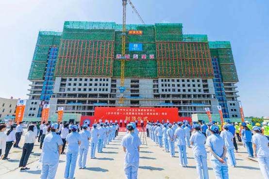 5月19日,項目主體結構,提前30天封頂。項目總建筑面積15.6萬平方米,規劃設計床位1900張,按照重癥集中救治中心的要求設計建造,是一座“平戰結合”型醫院,是濟寧市“十大攻堅行動”公共衛生應急管理改革聚力實施的“五大中心”建設之一。