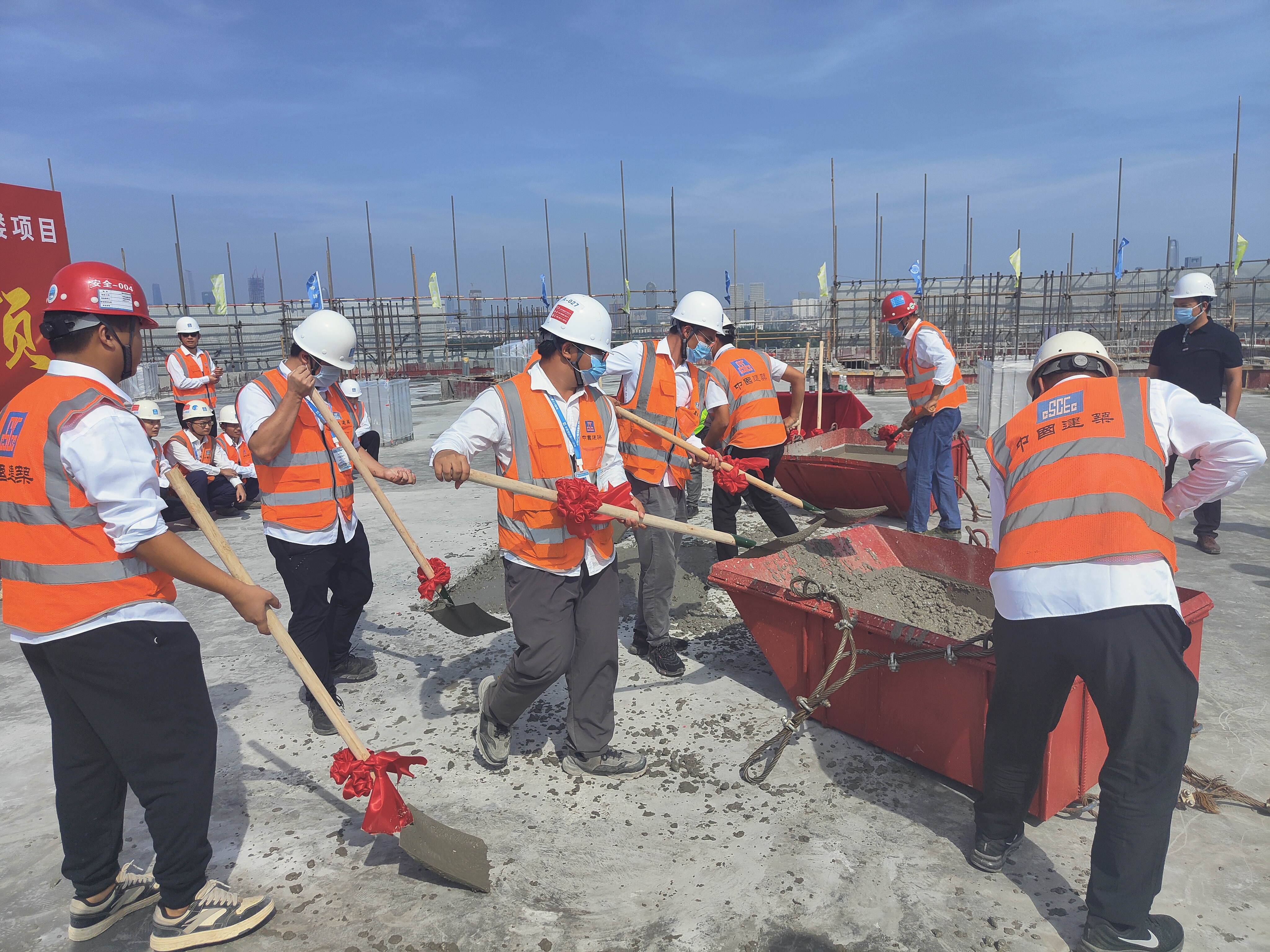 項目主體結構的全面封頂,是項目全體管理人員近一年來艱苦奮斗的結果,項目團隊接連克服了臨建階段生活條件艱苦簡陋、地下室階段工期滯后、地上階段疫情防控形勢緊張等諸多困難,高標準、高質量地完成了主體結構封頂,取得了項目建設過程中的階段性勝利,這也意味著項目工作重心向裝飾裝修方面轉移。項目將著手下一階段各項準備工作,及時調整工作部署,以明年5月竣工交付為奮斗目標,全面加速推進生產經營工作,為實現項目完美履約提供堅強保障。