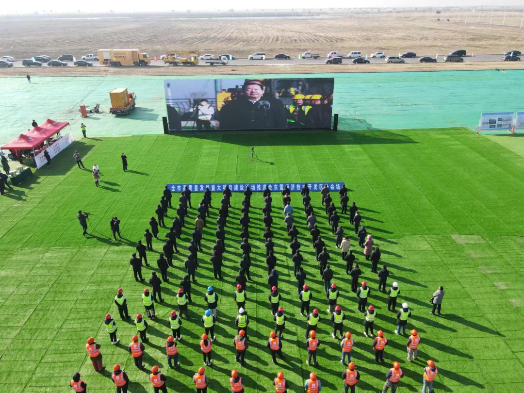 中建八一承建的東營海上風電大部件產業園項目作為東營市經濟技術開發區分會場同步開工。東營市副市長邊志偉,東營經濟技術開發區黨工委書記、管委會主任康茂禮,黨工委委員、管委會副主任張玉明,墾利區委常委、政法委書記劉軍及青島公司相關負責人參加開工儀式。