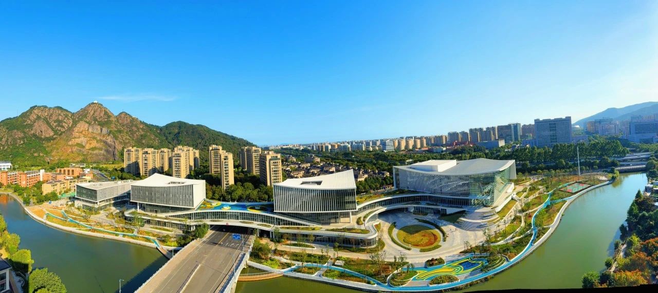 項目依山傍水而棲整體造型舒展蜿蜒外立面設計靈感取自風琴的琴鍵與豎琴的琴弦屋頂采用溫和的曲面營造浪漫靈動的建筑特征完美融入周邊自然山水順應人文和諧城市格局項目整體以銀色系為主展現出簡約、科技的現代感由四個功能獨立的建筑單體通過二層連廊緊密銜接在一起形成一個功能齊聚的綜合體印章為中國書畫藝術之標識四棟單體外型猶如“四方印”象征著龍灣“中國書法之鄉”的地域文化特色