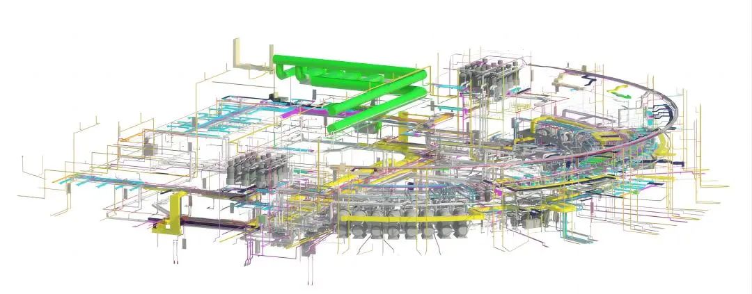 由于場館內虎鯨等對環境要求高,項目運用特色海洋生態維生系統自動化和能耗控制技術,利用BIM技術將設備管線與場館的主體結構及機電管線進行綜合排布,保證場館溫度、潔凈度、PH值等達標,營造舒適健康環境。
