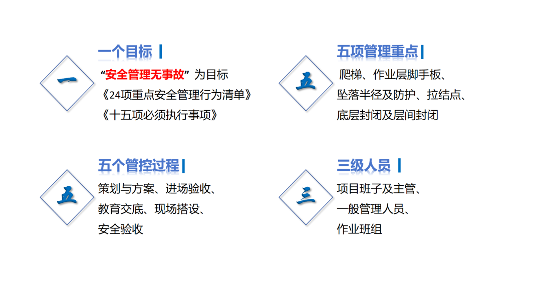 針對(duì)外架管控風(fēng)險(xiǎn)點(diǎn),項(xiàng)目總結(jié)“1553”管理辦法,即:以制度保障護(hù)航本質(zhì)安全,榮獲國際安全獎(jiǎng)優(yōu)異獎(jiǎng)、山東省建筑施工安全文明標(biāo)準(zhǔn)化示范工地稱號(hào)。