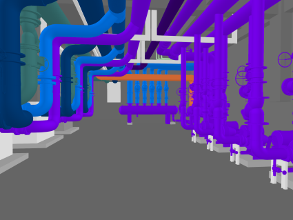 項(xiàng)目地下車庫車道區(qū)域管線復(fù)雜,對管線標(biāo)高要求嚴(yán)格。項(xiàng)目采取綜合支架排布,減少管線碰撞,提高車道凈高,同時根據(jù)現(xiàn)場施工進(jìn)度,對制冷機(jī)房、消防泵房等重要功能性房間,結(jié)合BIM技術(shù)應(yīng)用,對機(jī)房、泵房綜合管線進(jìn)行排布優(yōu)化,使得機(jī)房內(nèi)部維修方便、整齊美觀。