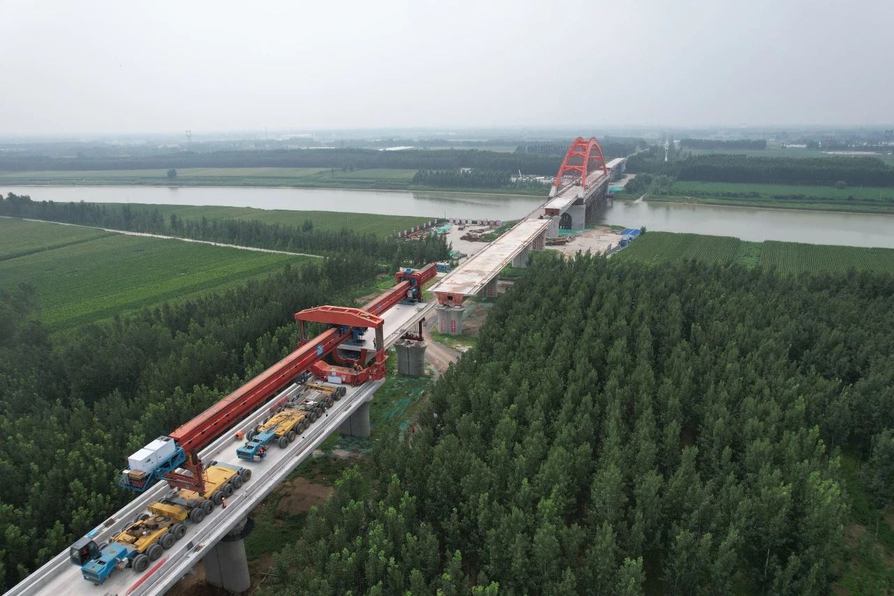 自2023年5月開始架梁施工以來,項目團隊嚴格落實施工計劃,穩步推進建設進度,已完成大里程(首架)方向共計349孔箱梁架設任務。