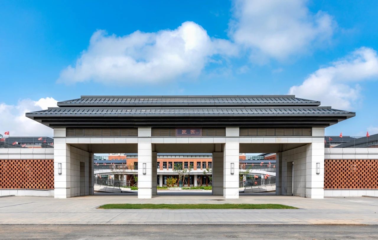 項目以“規矩方圓”為設計語言,整體布局主輔有序、四方圍合,大量采用中軸對稱式設計理念,參考四合院、廊廡等傳統建筑風格,將現代元素與傳統文化巧妙融合,打造守持正固的文化校園,營造應時而新的藝術氛圍。