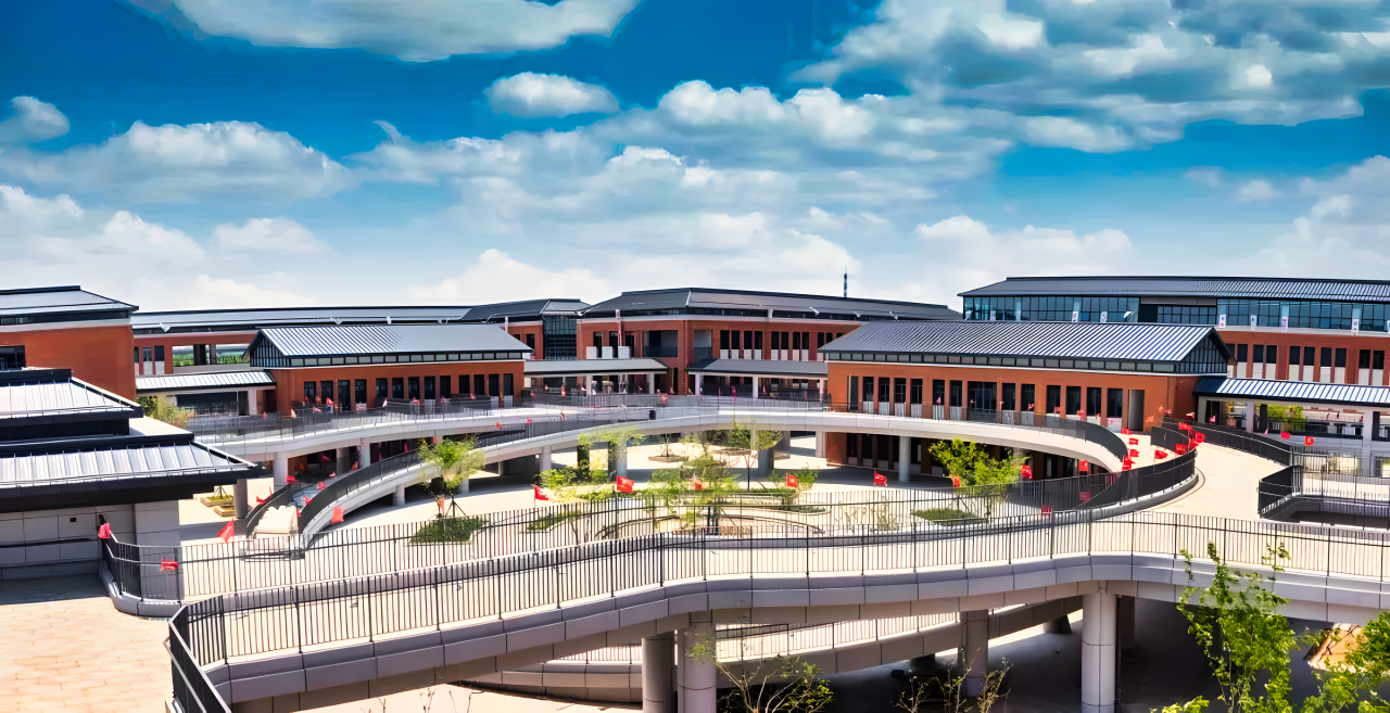 項目外觀采用干掛陶土磚+干掛石材體系,為學院外觀增添豐富視覺效果,雅園建筑間采用了多處廊橋結構,形成“廊深閣回”的古典風韻;匠園建筑采用“外方內圓”布局設計,用圓形立體架空走廊聯通建筑群落,將便利簡約的現代感設計融入紅磚黛瓦的傳統文化藝術空間。