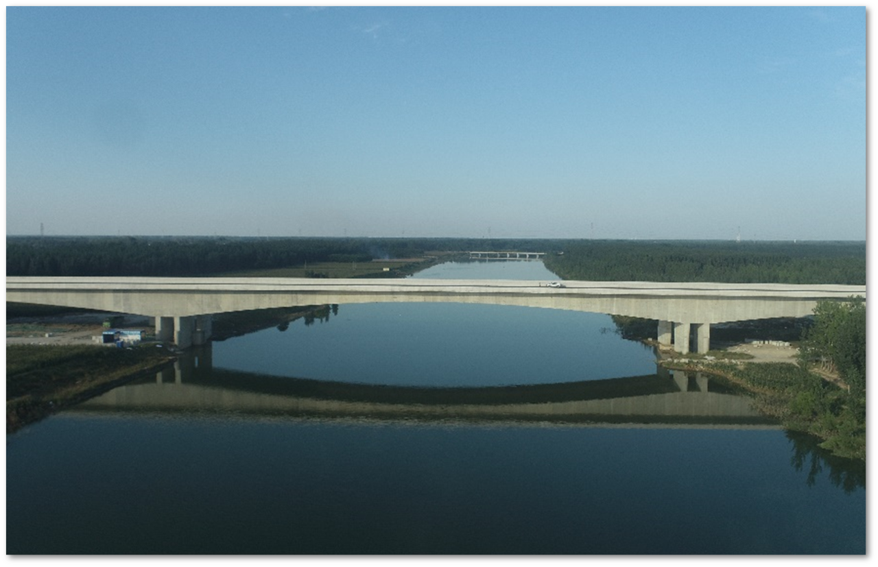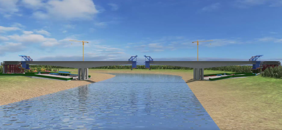 徒駭河特大橋是項目施工的重難點,全長1248.5米,共9聯,單幅橋寬16.5米,主跨長358.5米,最大跨徑165米,主橋采用單箱單室變截面預應力混凝土連續梁結構形式,是徒駭河跨徑最大連續剛構現澆梁。