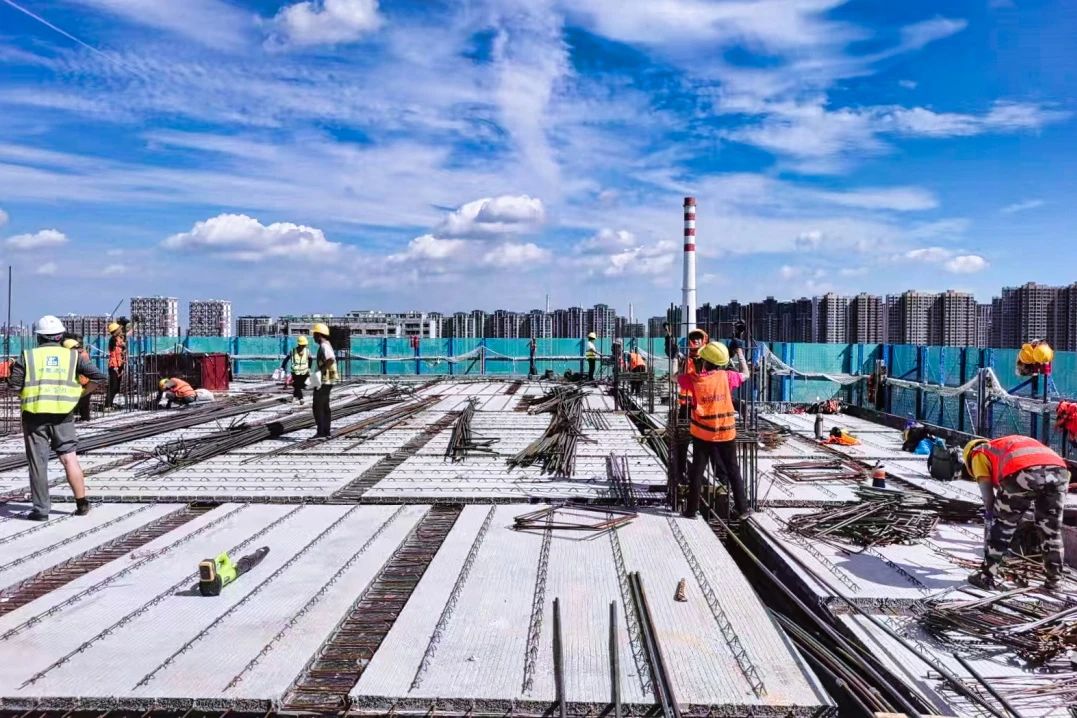 項目踐行全員全專業網格化管理,科學組織現場各專業施工穿插,牽頭編制專業分包各項計劃,順利完成30余萬方土方開挖及23米深基坑支護樁錨索施工任務,同時項目在主體施工階段堅持方案先行、樣板引路,規范各工序施工標準流程,確保一次成優、高效建造。