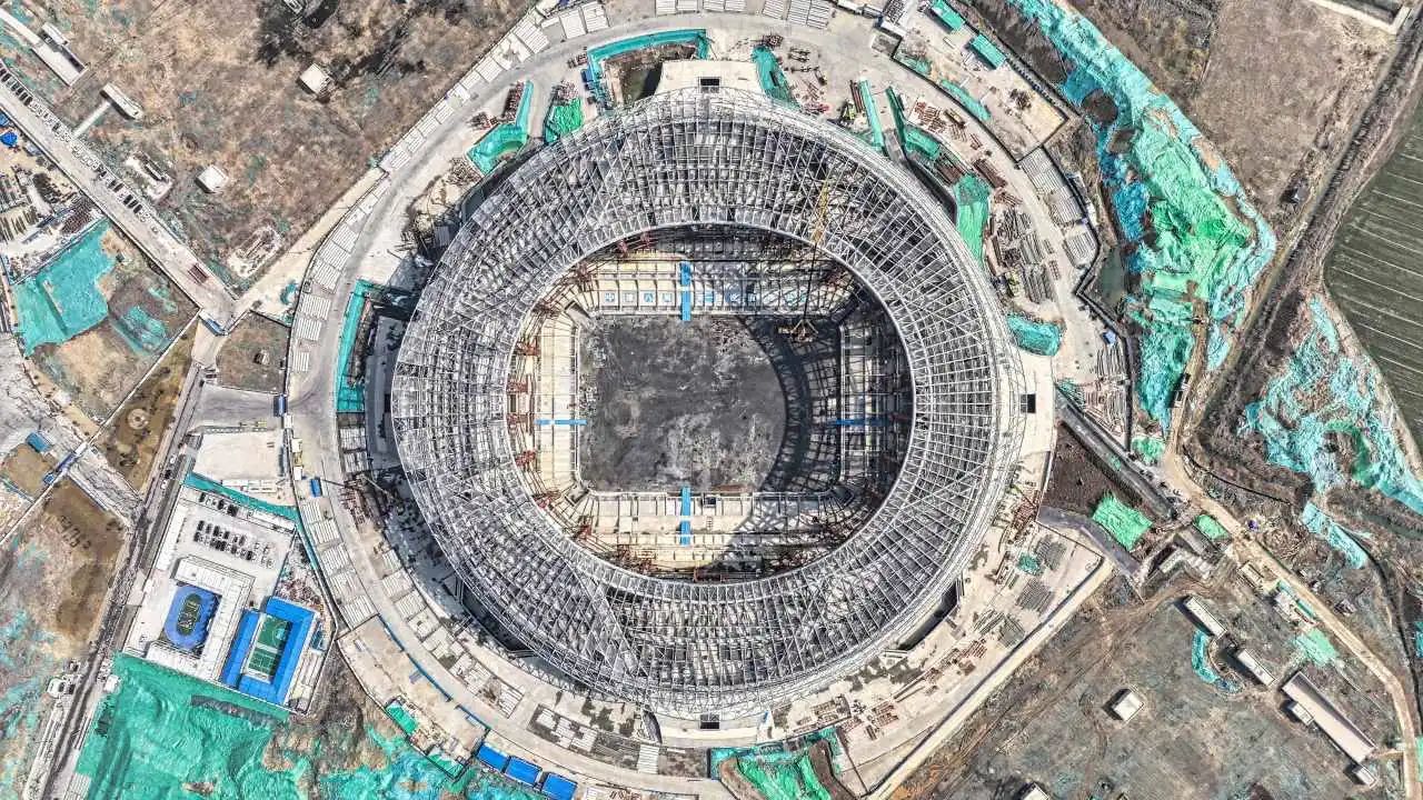 攻克國內之最!黃河體育中心專業足球場成功“戴冠”