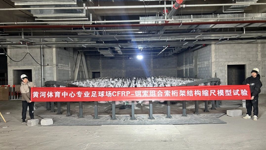 項目博士工作站聯合天津大學,設計國內首個縮尺比例為1/15的CFRP索桁架整體模型,開展靜力加載、張拉成型與斷索測試,3大力學試驗解決索桁架張拉成型過程中的強非線性、大變形技術難題,確保最終張拉型態符合設計要求,為下步施工奠定理論基礎。