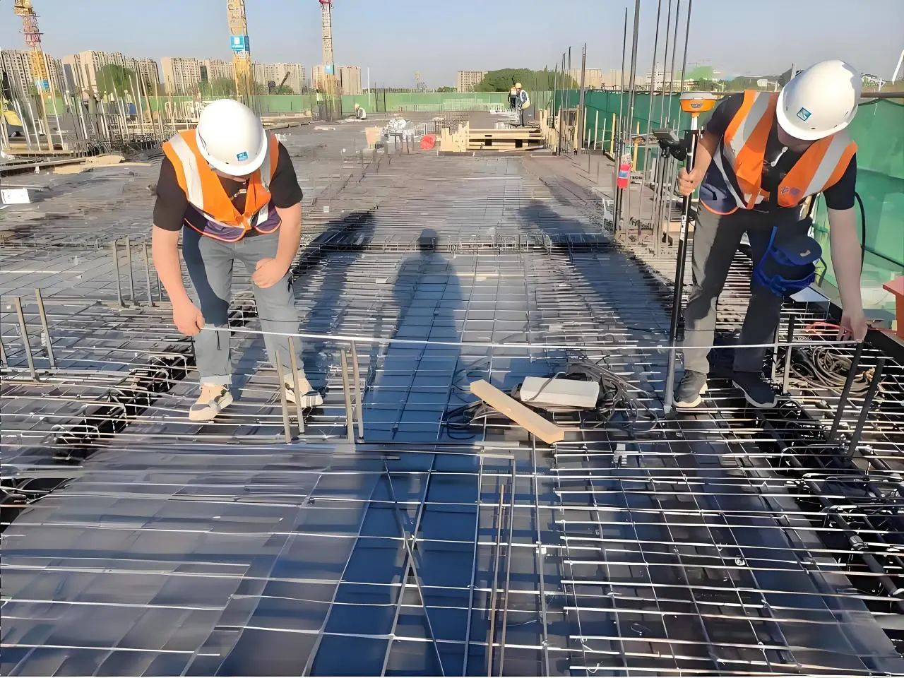 項目在主體結構施工階段,創新采用RTK實時動態定位技術,懸挑架所有埋件位置支持一鍵定位,20分鐘可完成3000平方米埋件位置復核,采用方圓扣龍骨模板體系技術,有效提高模板垂直度、平整度與施工效率。