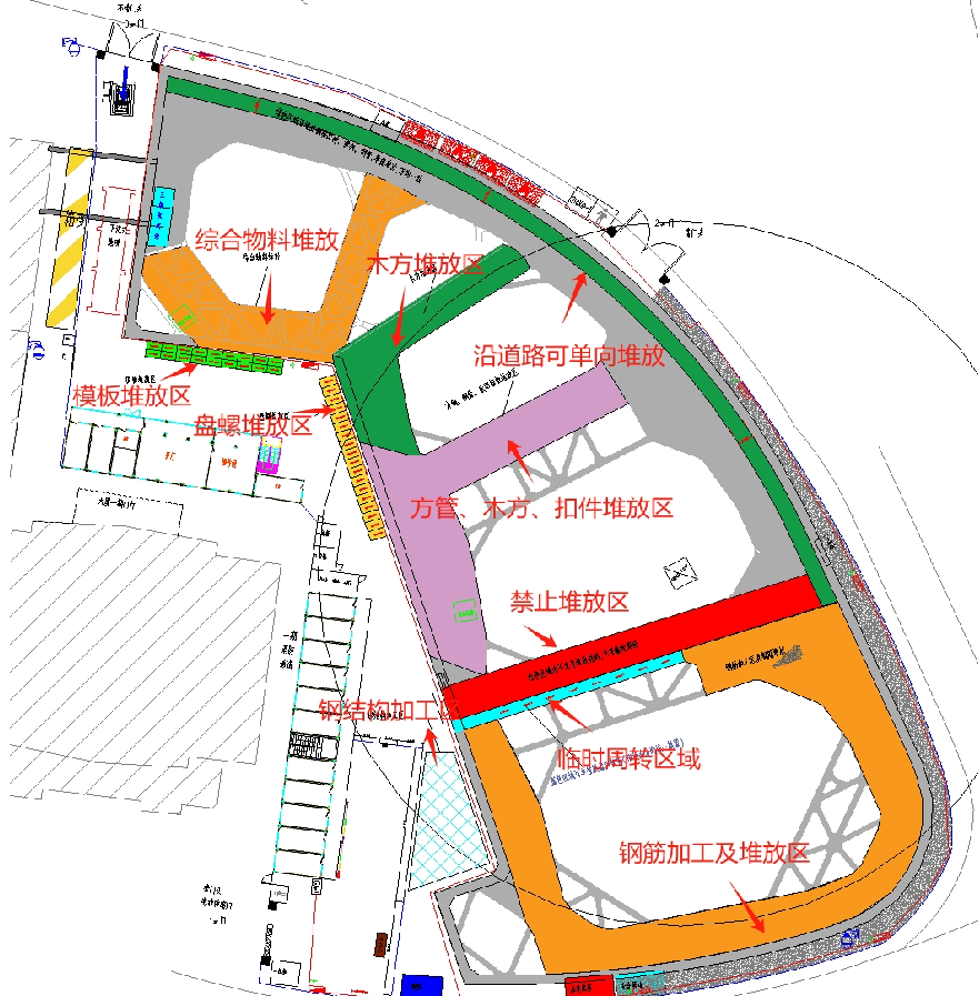 項(xiàng)目基坑面積5500平方米,占項(xiàng)目總場地面積的91%,需要“螺螄殼里做道場,方寸之間做騰挪”,項(xiàng)目對(duì)場區(qū)進(jìn)行科學(xué)布置,分類分區(qū)分專業(yè)規(guī)劃材料堆場,細(xì)化料場管理責(zé)任單位及責(zé)任人,動(dòng)態(tài)調(diào)整物資進(jìn)場情況,確?!半S用隨進(jìn)、適時(shí)生產(chǎn)”。