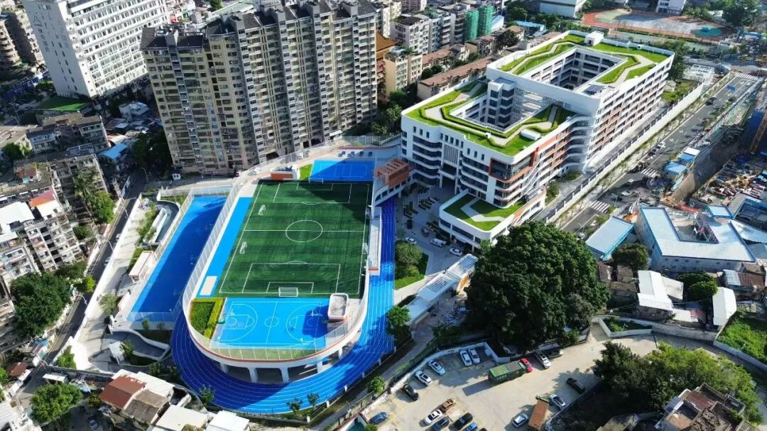 深圳泰寧小學(xué)項(xiàng)目位于深圳市羅湖區(qū),總建筑面積 3.07 萬平方米,設(shè)置 42 個(gè)班,共 1800 余個(gè)學(xué)位,集教學(xué)教室、教師辦公、圖書館、多功能廳、籃球館等功能于一體。