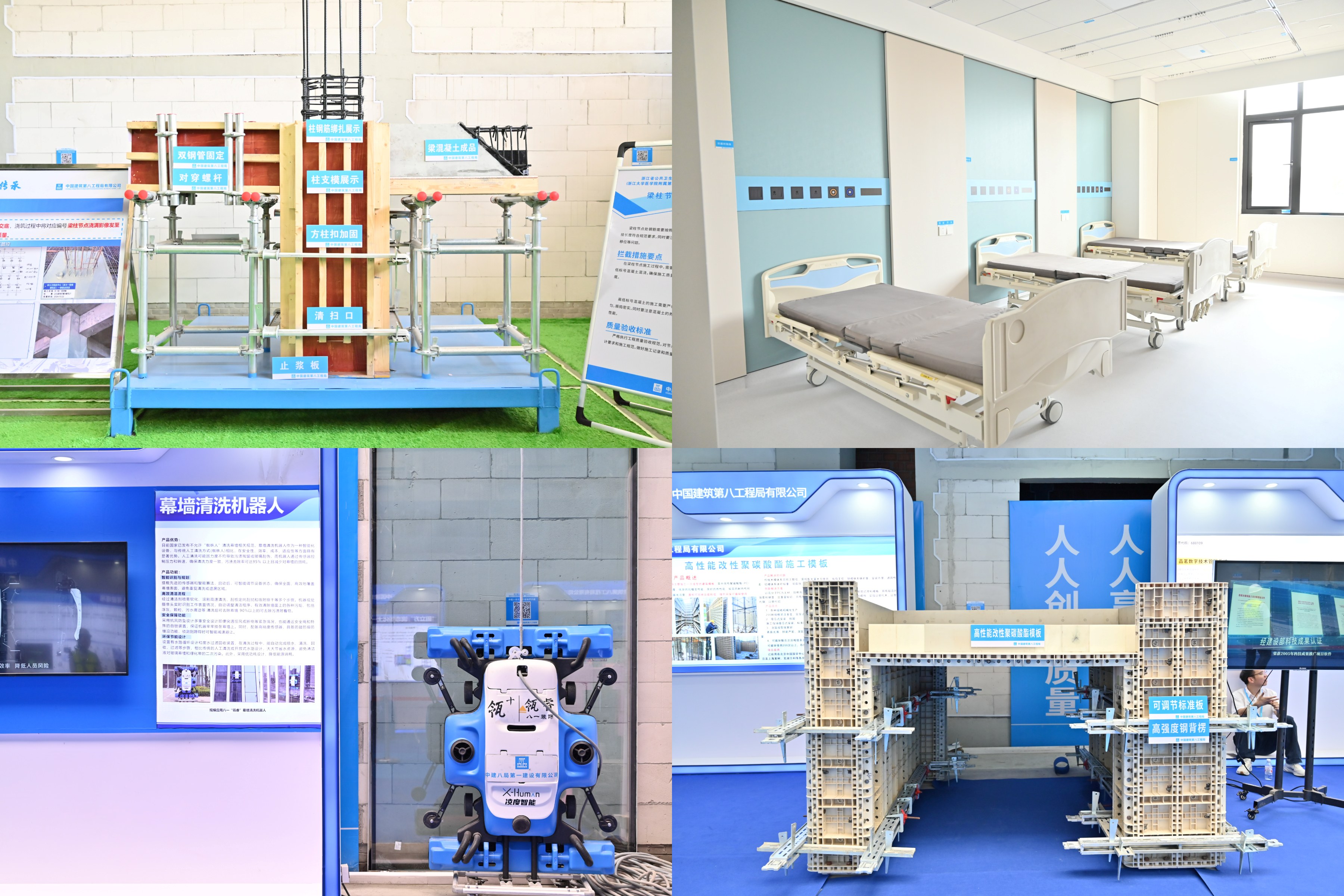 現(xiàn)場設(shè)“醫(yī)療好房子、質(zhì)量工藝樣板、質(zhì)量實(shí)體樣板、智慧工地”四大展區(qū),由具身智能機(jī)器人擔(dān)任講解員,展示中建八局在醫(yī)療建筑質(zhì)量管控與科技創(chuàng)新的成果。“醫(yī)療好房子”展區(qū)聚焦“韌性醫(yī)療、院城融合、高效模塊、人文醫(yī)院、綠色低碳”五大核心,展示國際化三級甲等綜合性醫(yī)院與省級公共衛(wèi)生臨床中心一體化運(yùn)營新模式,以“平急兩用”雙軸并行框架,通過多舉措打造多功能醫(yī)療空間,滿足日常救治與應(yīng)急保障需求。質(zhì)量工藝樣板展區(qū)集中展示樁基礎(chǔ)、頂板后澆帶等關(guān)鍵工序樣板,明確全周期質(zhì)量管控標(biāo)準(zhǔn);質(zhì)量實(shí)體樣板展區(qū)依托實(shí)體結(jié)構(gòu),展示主體結(jié)構(gòu)、設(shè)備安裝、裝飾裝修等成型質(zhì)量。智慧工地展區(qū)呈現(xiàn)剪叉車安全平臺(tái)、智能施工升降機(jī)、無人塔吊模型、各類機(jī)器人等智能裝備,以科技創(chuàng)新注入“新質(zhì)生產(chǎn)力”。