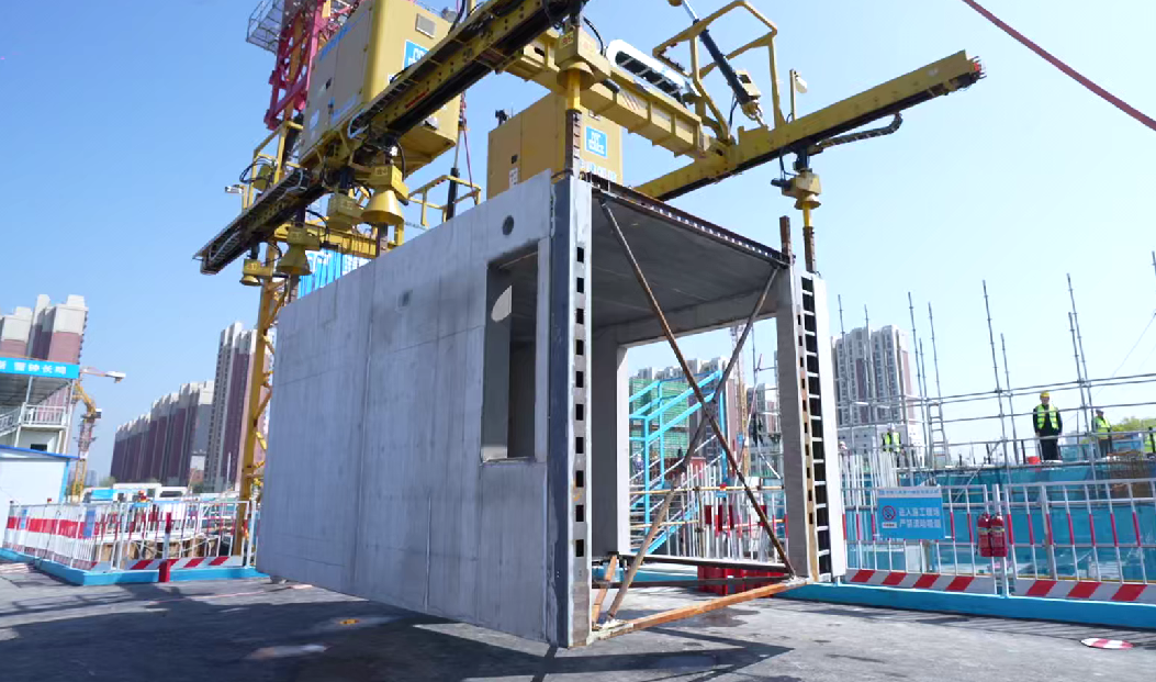 在濟南中建?大學里住宅項目現場,一棟 53. 5 米高的建筑由 288 個 “建筑積木” 拼裝而成,實現了 “12 分鐘一面墻、2 小時一間房” 的高效建造。