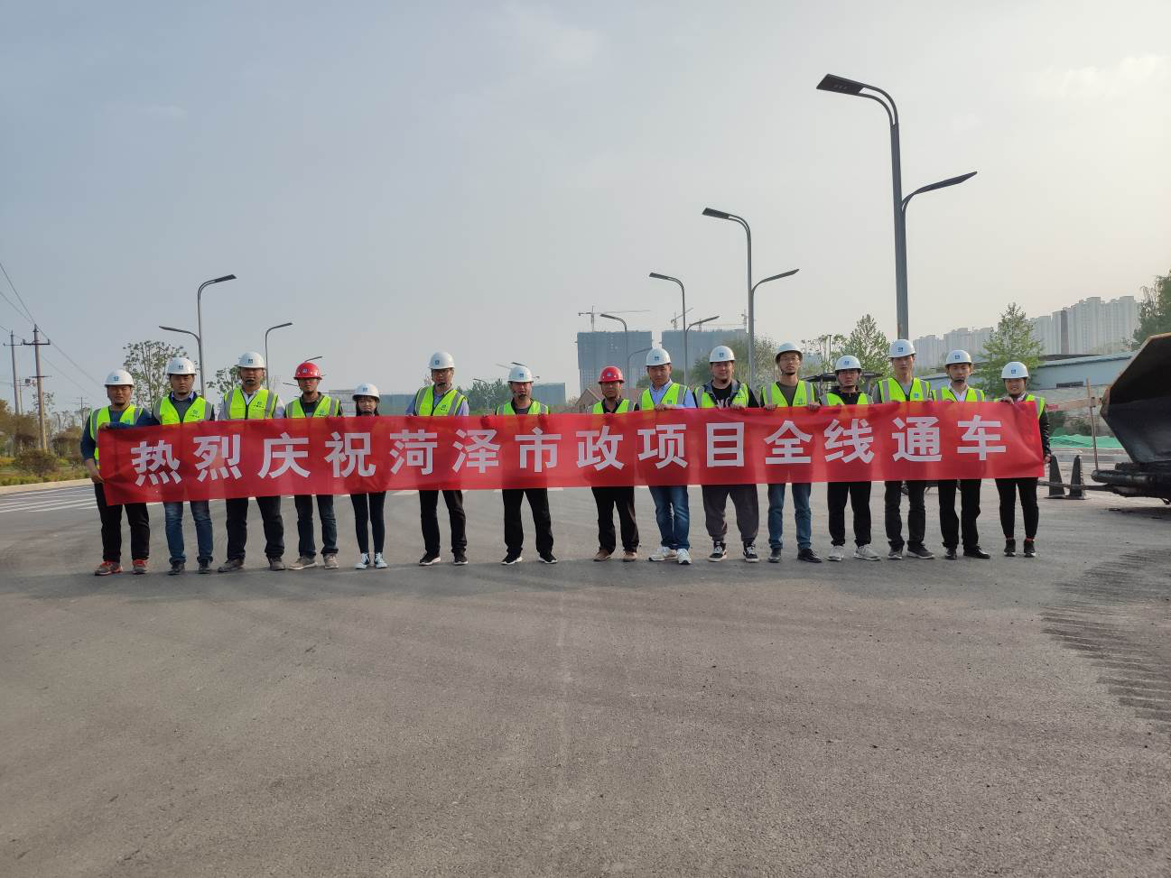 4月20日,隨著康莊東路行車道瀝青上面層的攤鋪完成,標志著菏澤市政項目工程全長8. 25km的市政道路全部施工完成,順利實現全線通車。