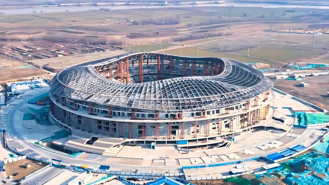攻克國內(nèi)之最!黃河體育中心專業(yè)足球場成功“戴冠”