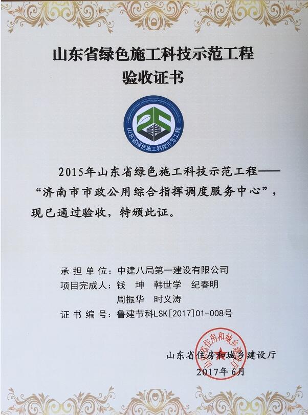 公司承建的“濟南市市政公用綜合指揮調(diào)度服務中心”通過山東省綠色施工科技示范工程驗收。