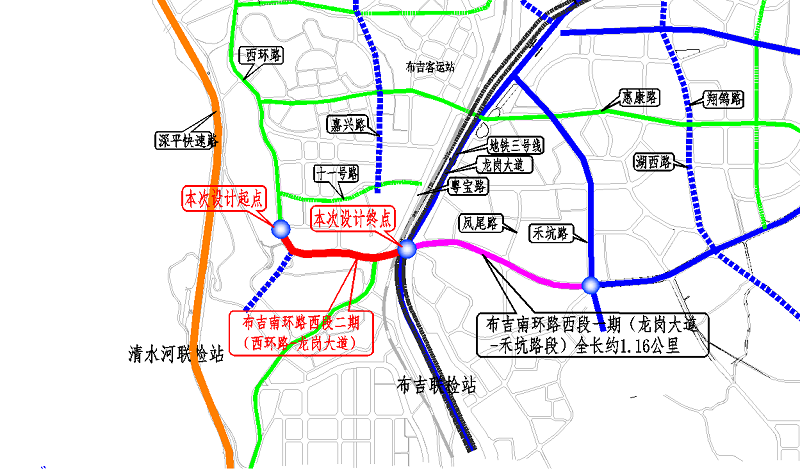 布吉南環(huán)路(西環(huán)路至禾坑路段)建設工程,由我司代建,位于深圳市布吉街道,西起現狀西環(huán)路與十一號路交點,東至與現狀禾坑路交點,道路全長約2.4km。布吉南環(huán)路的建設對于完善中部物流組團路網結構,促進組團經濟社會的發(fā)展,實現其規(guī)劃目標具有重要的意義。