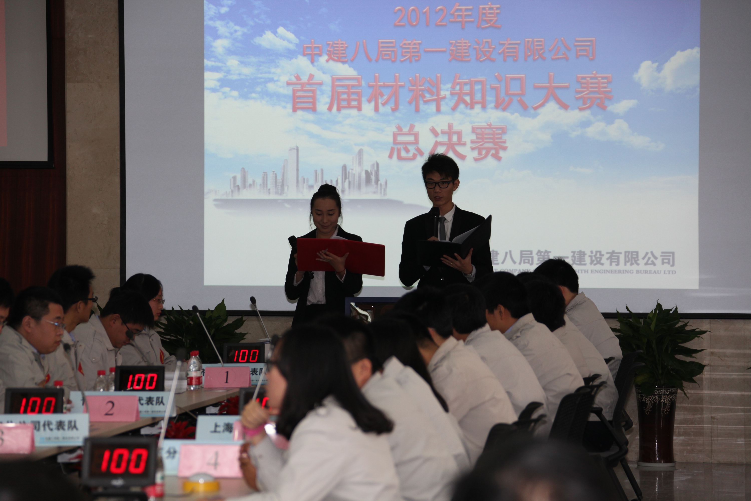 12月22日,倍受關注的首屆材料知識大賽總決賽在裝飾一新的公司機關培訓中心舉行,預賽中脫穎而出的7支土建分公司代表隊進入總決賽,并展開巔峰對決。公司董事長徐愛杰、黨委書記許紅、總經理李永明、副總經理寧文忠、副總經濟師許長輝蒞臨現(xiàn)場觀看比賽。