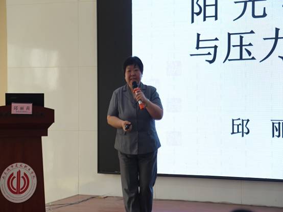 25日上午,由山東省委黨校教授邱麗莉教授為學員進行為期半天的《陽光心態》授課。邱教授授課幽默而生動,結合時事新聞向大家闡述了保持陽光心態的重要性,并且傳授了多種疏解壓力的方法。